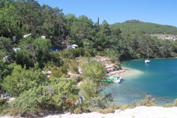Would you like to wake up to a view of the water and take a dip first thing in the morning? At Camping du Soleil in Esparron-de-Verdon, it's a reality! Our lakeside campsite gives you direct access to one of the most beautiful beaches in the Verdon, with its crystal-clear waters.